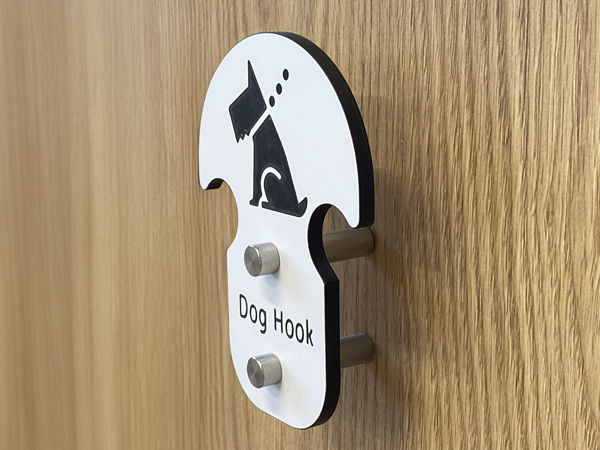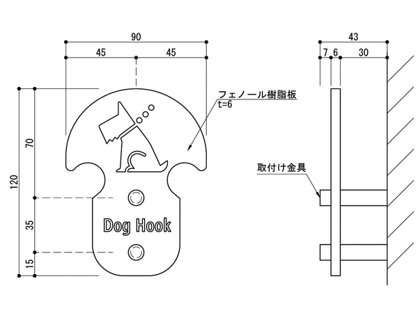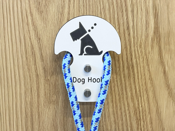 離れた場所からでも認識しやすいワンちゃんのピクトサイン付きです。 アンカー型のデザインで、リードが外れにくい設計となっています。 表面に抗菌処理を施したフェノール樹脂製です。