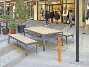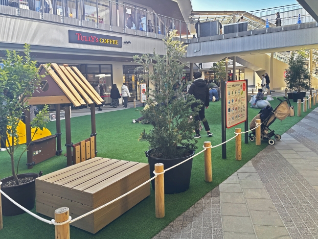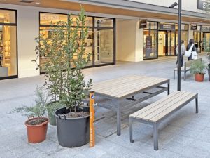 三井アウトレットパーク岡崎様では、OKAZAKI MARKET内のベンチに設置されています。