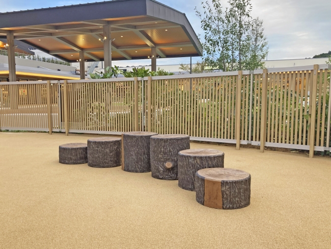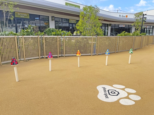 三井アウトレットパーク岡崎は、愛知県初の大型アウトレットモールとして2025年11月にオープンしました。豊富な店舗数と広大な公園型施設が特徴で、食や遊びなど多様な体験ができる空間となっています。 当社は、ドッグラン内に擬木ステップ、きのこのスラロームを、アウトレット内にウンチボックス、おしっこポール、リードフックポール、リードフックを納品しました。